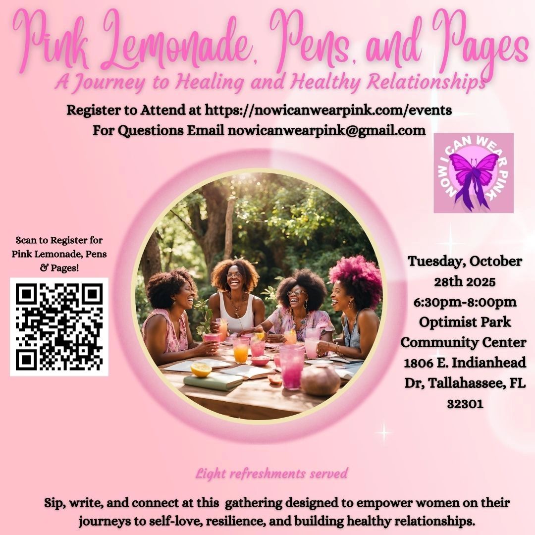 Join us for Pink Lemonade, Pens & Pages, a 1.5-hour interactive event designed to spark growth, connection, and personal transformation.